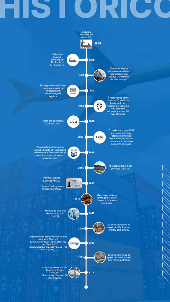Desde a sua fundação em 1986, a CLAC construiu uma reputação baseada na confiança, transparência e comprometimento, consolidando-se como uma das principais tradings do Brasil. Hoje, figura entre as 10 maiores empresas do setor, com um portfólio diversificado de mais de 100 clientes ativos, atendendo a diferentes segmentos da indústria e do comércio.